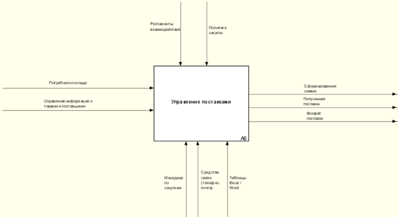 Рис. 5.7. Схема процесса управления поставками на 1-м уровне декомпозиции в нотации IDEF0 и модели TO-BE