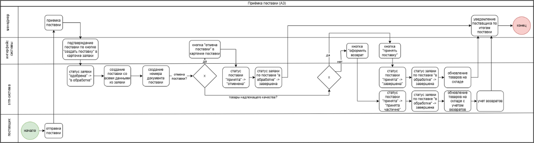 - приёмка поставки и возврат.