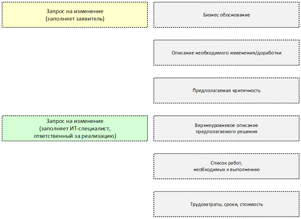 - согласование запросов на изменение ИТ-системы и их оценка на соответствие текущей ИТ-архитектуре, технической реализуемости и рискованности;