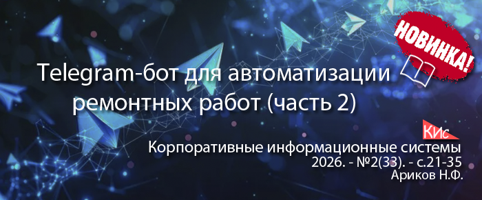Ариков Н.Ф. Разработка Telegram-бота для автоматизации процесса ремонтно-строительных работ (часть 2) // Корпоративные информационные системы. – 2026. – №1 (33) – c. 28-35. – URL: https://corpinfosys.ru/archive/2026/issue-34/331-2026-34-telegramchatbot.