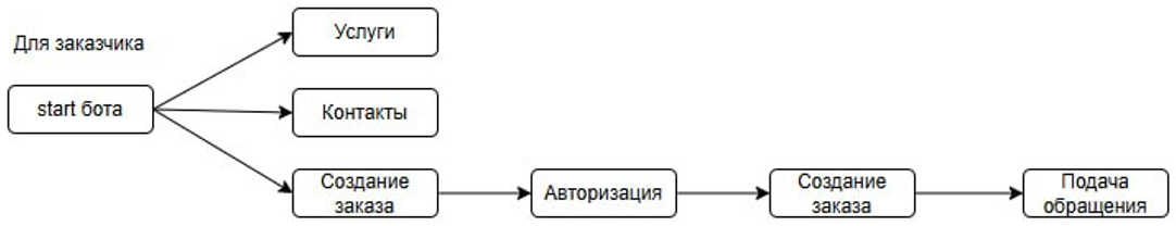 | 4 | Создание заказа | Нажатие на кнопку «Создание заказа» | Заказчик заполняет форму для создания заказа | |