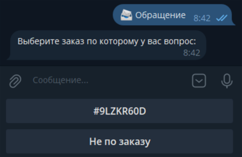 | Отправка обращения менеджеру | Менеджеру приходит уведомление о поступившем обращении | |||